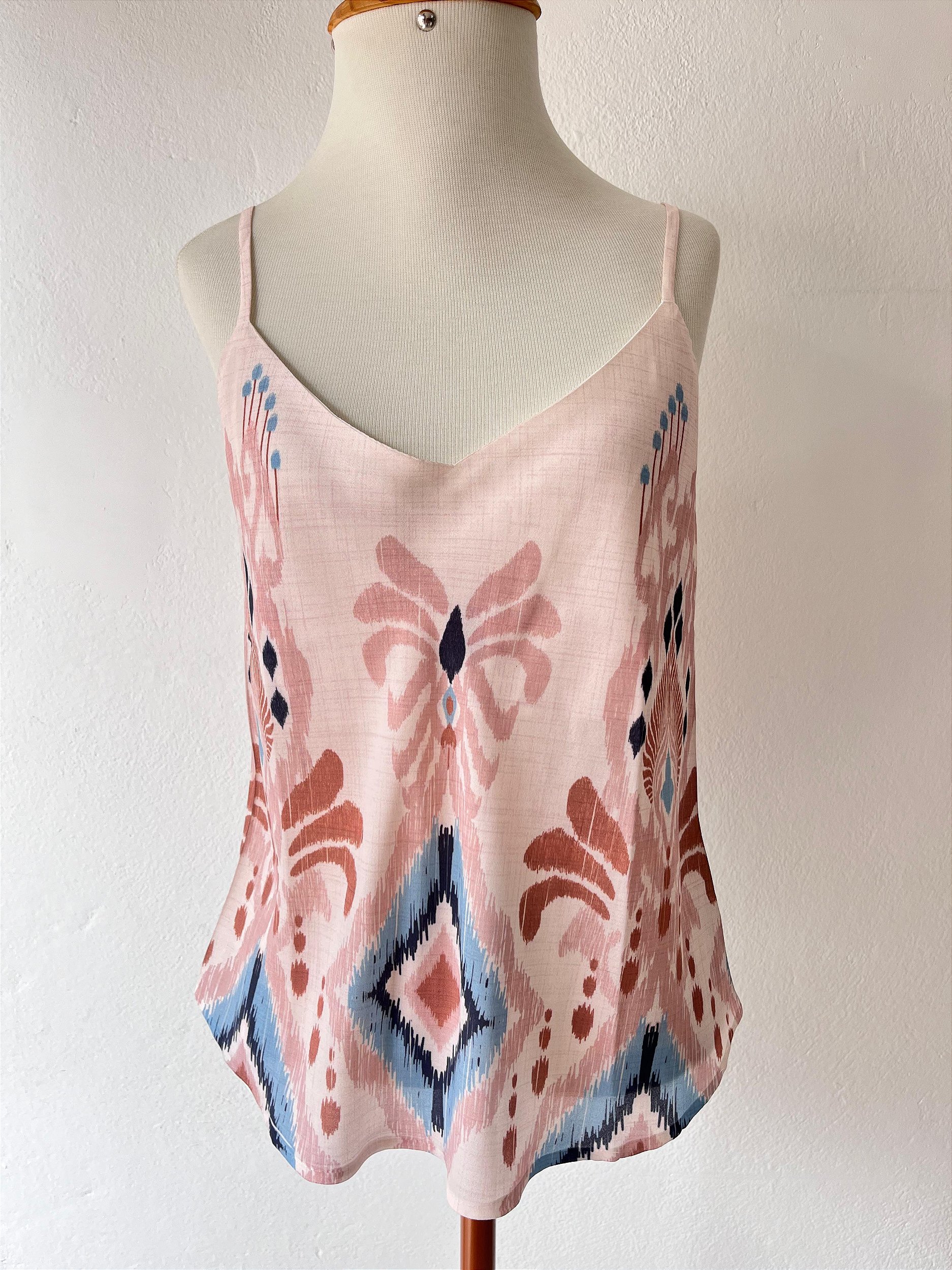 "Regata feminina em crepe de alta qualidade, com alças finas que proporcionam um toque de elegância e leveza. O destaque fica por conta da estampa exclusiva, perfeita para quem busca um look moderno e diferenciado. Ideal para dias mais quentes, essa peça combina conforto e estilo, sendo versátil para diversas ocasiões. Disponível em diferentes tamanhos, é uma escolha indispensável para quem quer estar na moda com sofisticação.
